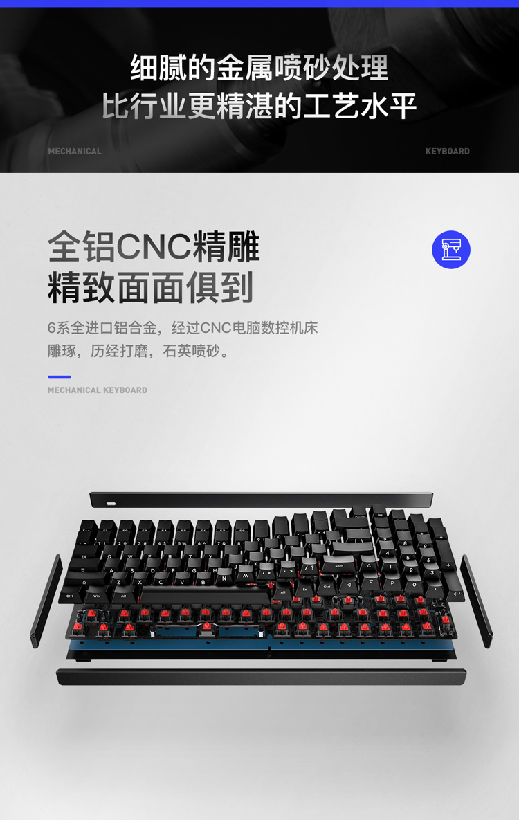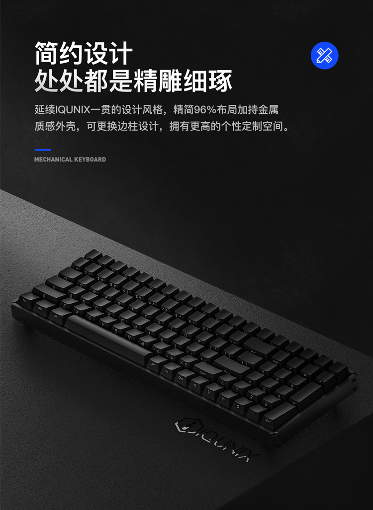商品名称:iQunix F96碳黑版蓝牙机械键盘 CNC铝合金外壳 PBT键帽 100键游戏键盘 原厂樱桃Cherry轴体 RGB背光 茶轴